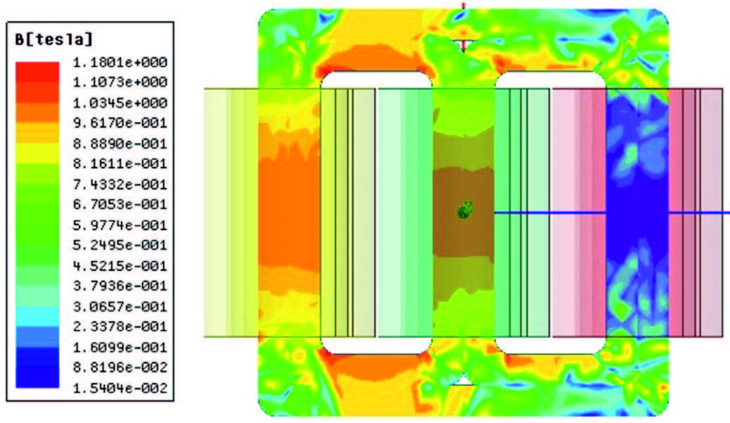 Расчет потерь активной мощности, распределения напряженности магнитного поля, а также магнитной индукции производился методом конечных элементов. Метод основан на разбиении спроектированных моделей АМТ и ТСТ, состоящих из сплошных тел, на конечные элементы исчислимого количества. Расчет заключается в аппроксимации дискретной модели, которая создается из множества кусочно-непрерывных функций определенных в конечном числе подобластей (элементов).