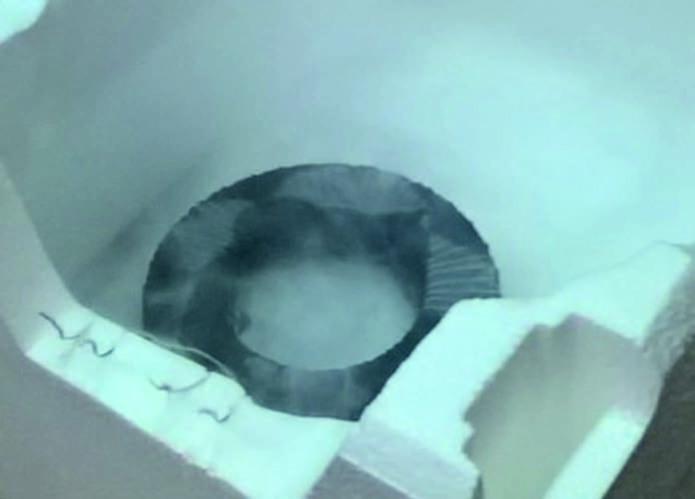 Рис. 5. Испытуемый образец трансформатора в ходе подготовки к замерам в криостате с жидким азотом