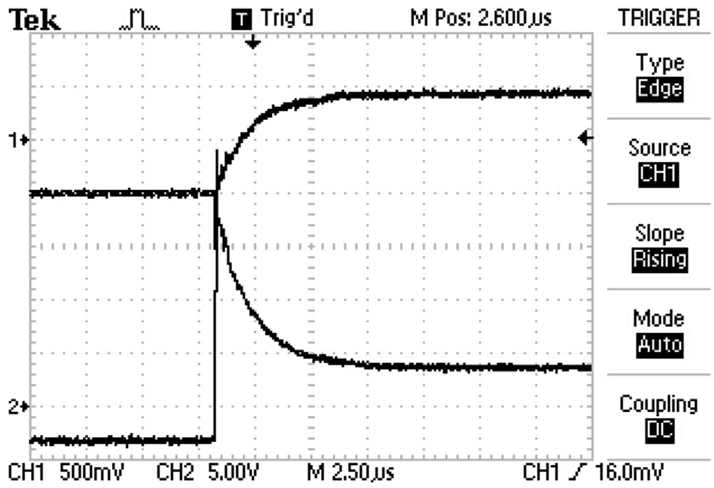 Необходимо сравнить начальный участок характеристики на осциллограмме 6А при нормальных условиях с нисходящей частью осциллограммы 6Б, отвечающей криогенному состоянию, — оба графика показывают один переходный процесс, описывающий реакцию вторичной обмотки на установление магнитного потока при проистечении в цепи первичной обмотки входного токового сигнала.
