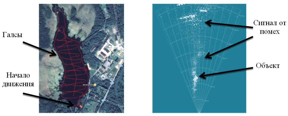 Рис. 2 Пример обследования акватории в сложных условиях: