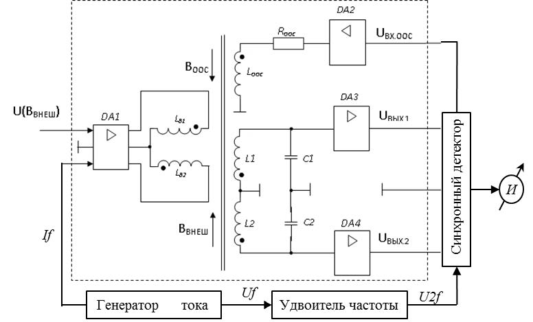 Рис. 10. Функциональная схема разработанной феррозондовой сенсорной системы